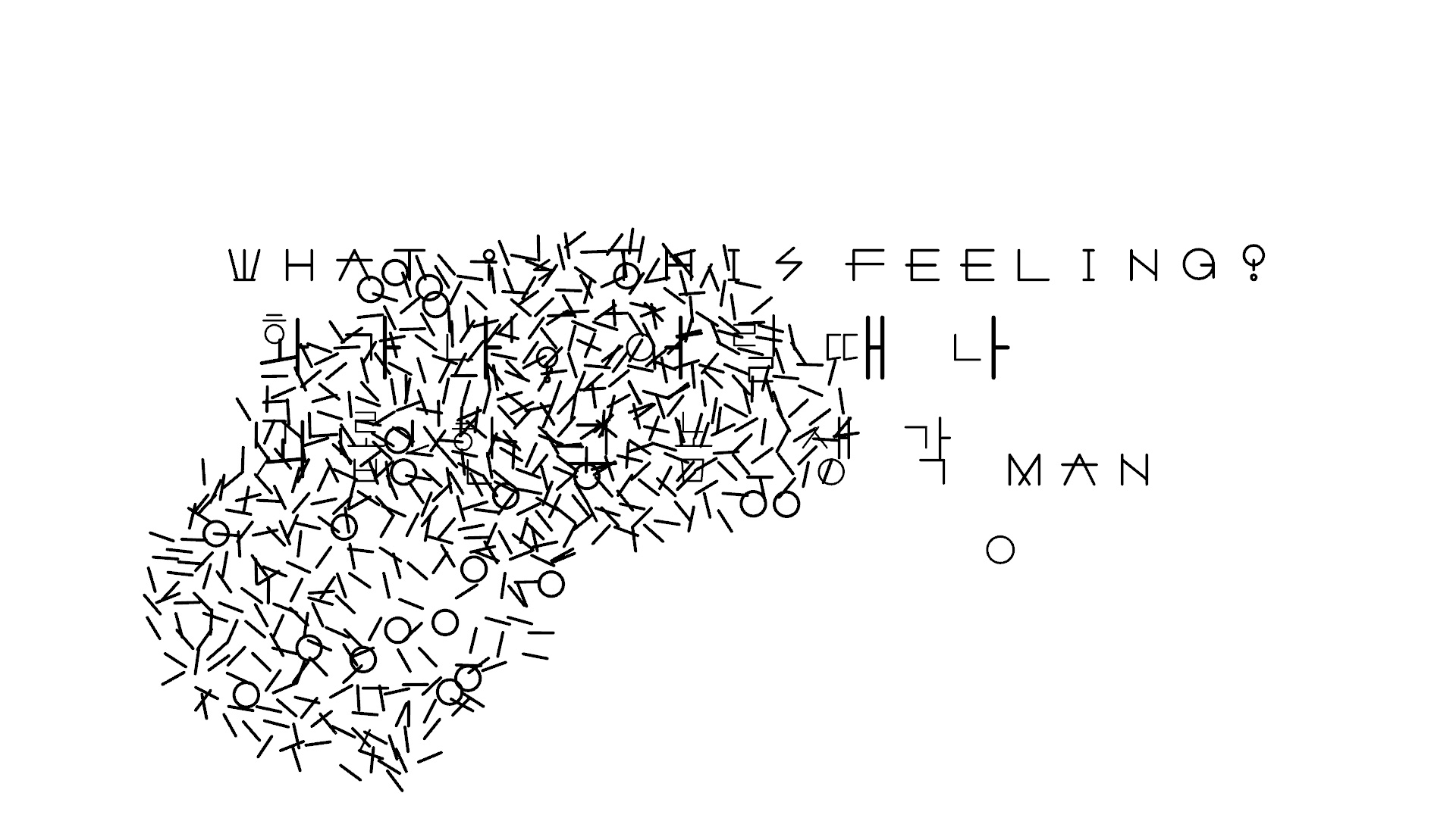 Generative realtime animation system that can fluidly generate Korean and English alphabets, transforming back and forth into each other.
