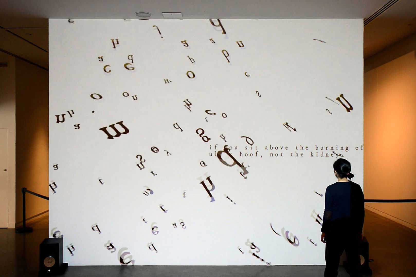 The letters are constantly swept around the screen as if trapped in a windy forest that can’t help but echo and disclose these secrets, despite systemic and historical suppression of such knowledge.