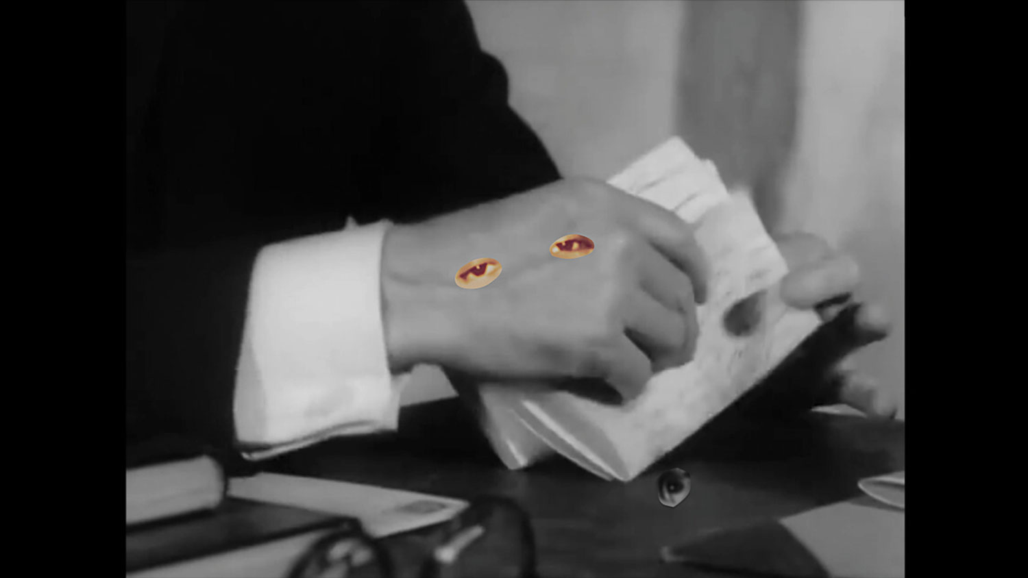 Dear Tomas reworks a sequence from Ingmar Bergman’s 1963 film Winter Light (Swedish - Nattvardsgästerna). Exploring the complex interactions between experiences of complicity, vulnerability, revenge, love, and religion, the work presents an unfolding scene of a priest opening and reading a letter from his past lover, which is complicated by the separation of voice and subtitles and the inclusion of layered, collaged elements.