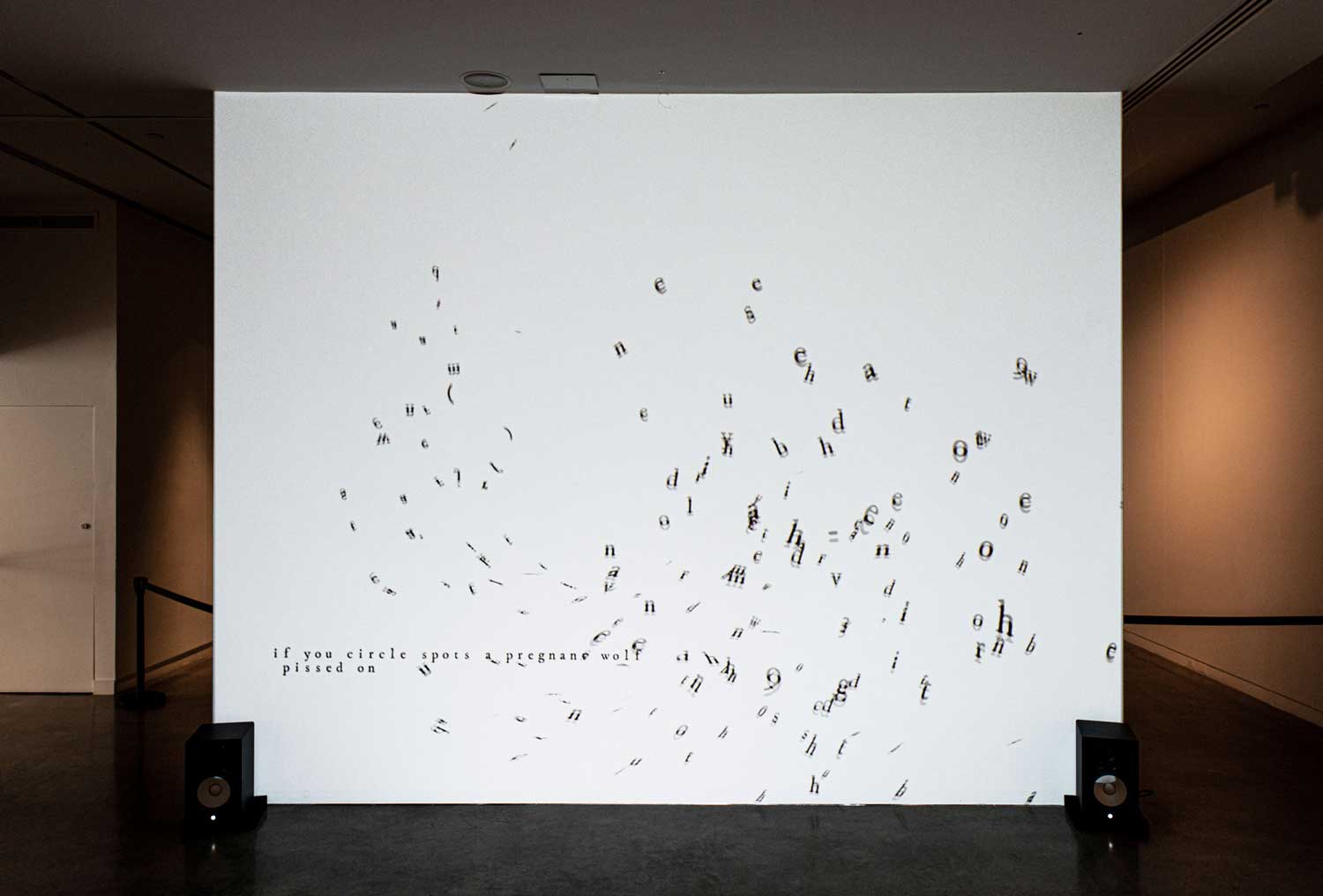 The letters are constantly swept around the screen as if trapped in a windy forest that can’t help but echo and disclose these secrets, despite systemic and historical suppression of such knowledge.